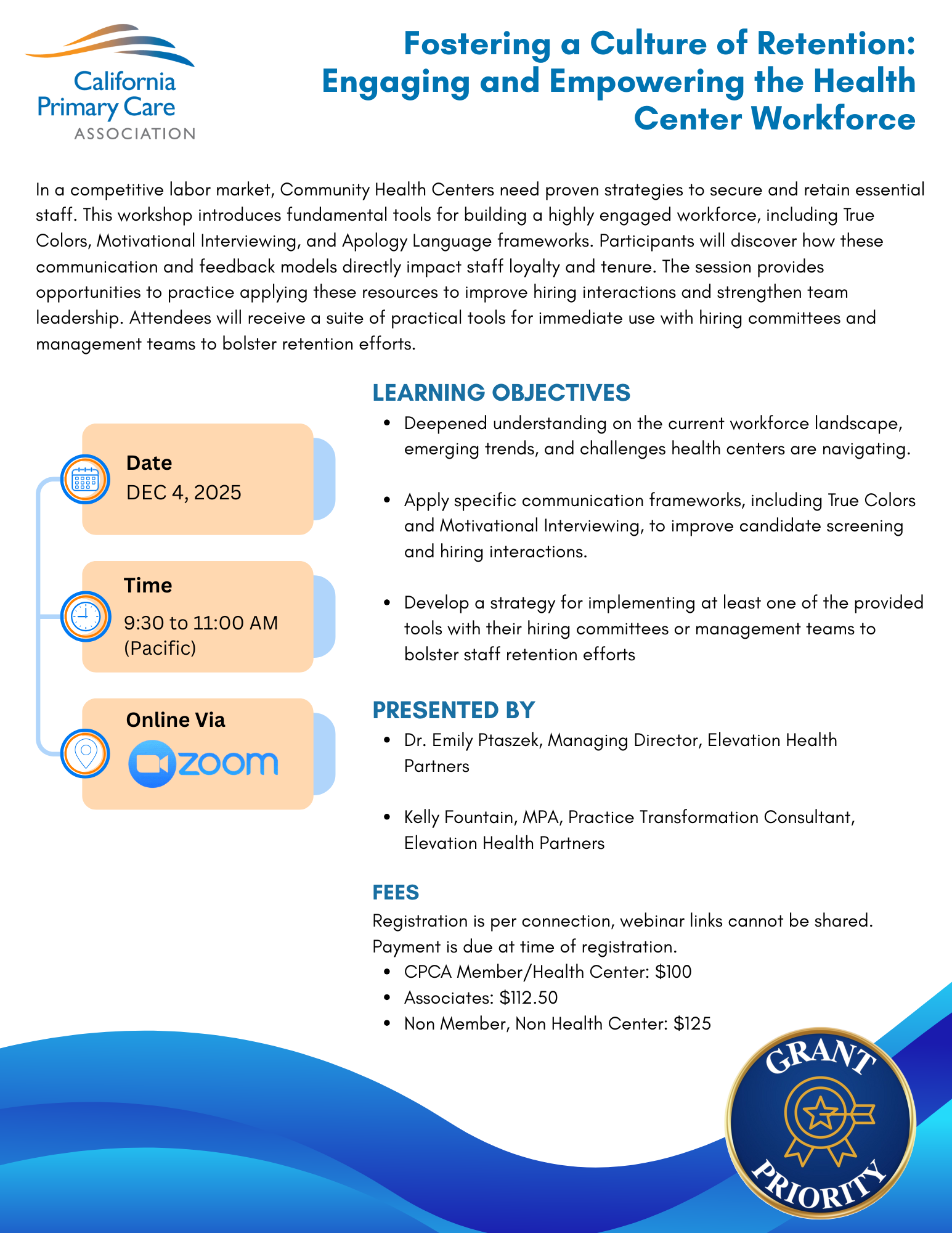 For complete details, visit our training homepage. All CPCA virtual events are hosted via Zoom.