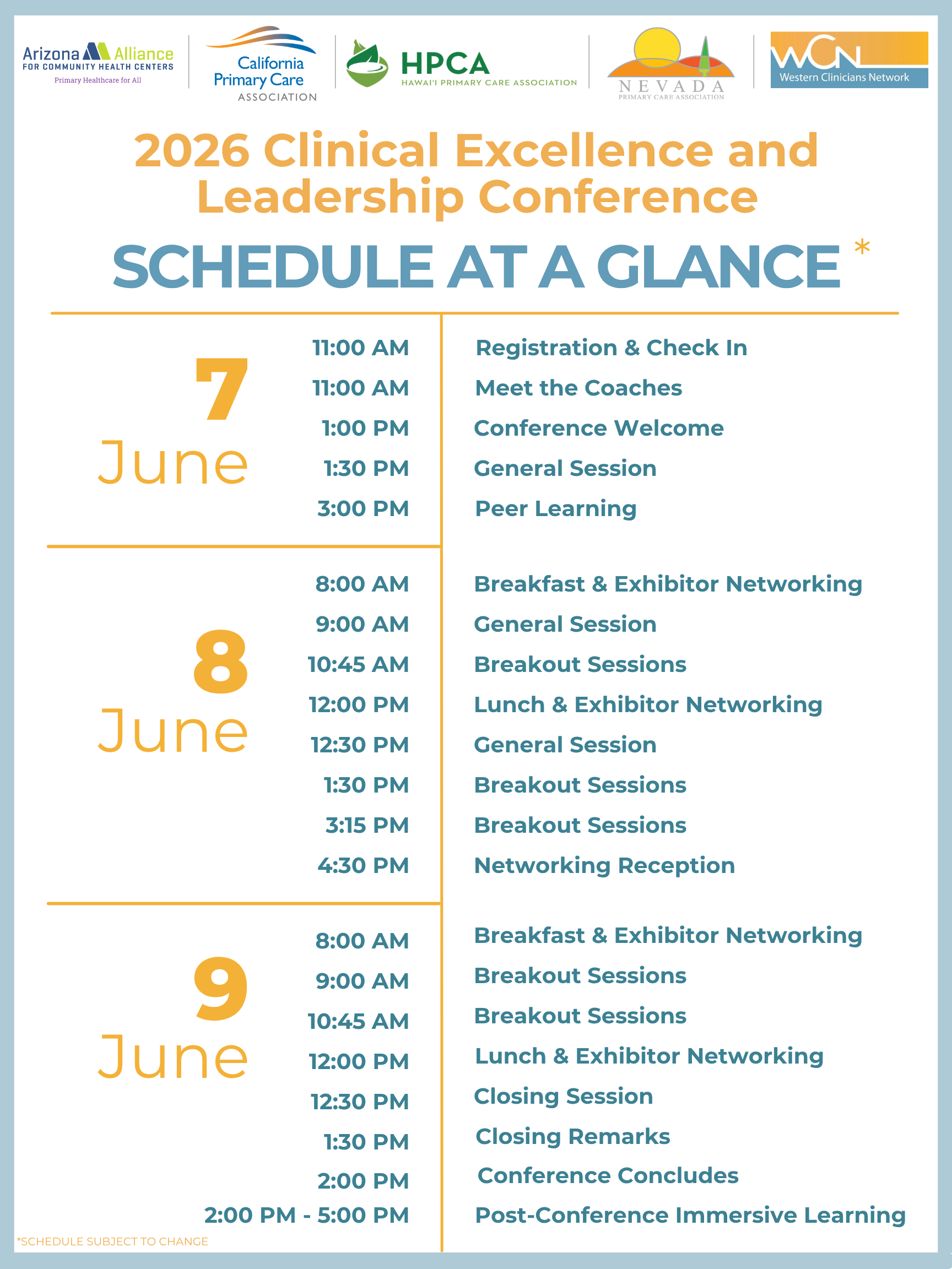 The California Primary Care Association (CPCA) and the Western Clinicians Network (WCN) partner each year to host the Clinical Excellence & Leadership Conference. This multi-day conference brings together healthcare leadership from across the region to focus on health center clinical and management teams with the goal of improving overall efficiency and effectiveness in care delivery.